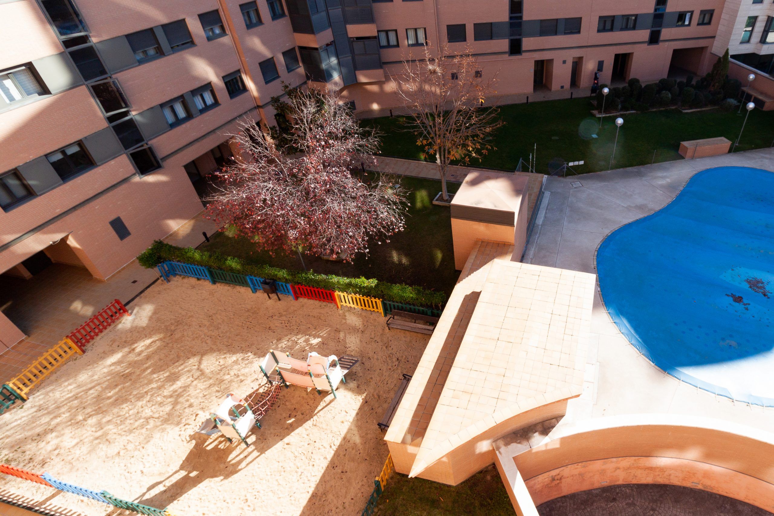 El inmueble se encuentra en una tranquila urbanización cerrada con jardín, piscina y gimnasio, cuenta también con parque infantil y seguridad 24h con videovigilancia.